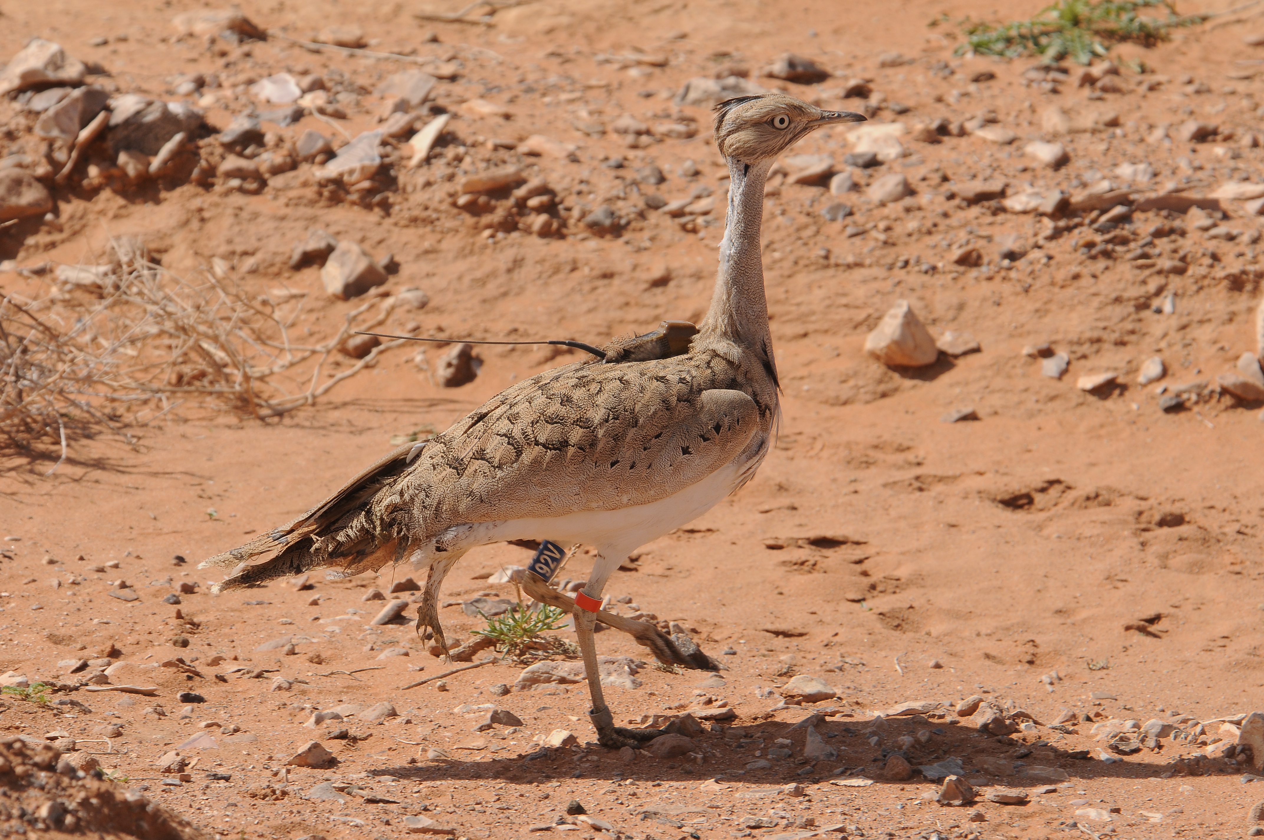 The Asian Houbara (Chlamydotis macqueenii) is considered a rare and endangered species at global level. It lives and breed in semi-desert and grassland ecosystems. Remnant Asian Houbara populations are widespread with a migrant and a resident form. Resident birds are distributed from the Negev Desert to Western India up to South Turkmenistan, as well as through the Arabian Peninsula. Migrant birds winter in the range of resident houbara but breed in Turmenistan, Uzbekistan, Kazakhstan, China and Mongolia. In Jordan, the Houbara (resident and wintering migrant) was historically found within the borders of the Hashemite Kingdom of Jordan and the Negev Deserts in Palestine adjacent to Wadi Araba. As a result of natural habitats destruction and hunting, this bird has almost disappeared from the wild late in this century. Through the efforts of the International Fund for Houbara Conservation (IFHC) to restore Houbara population in their former natural distribution range, the Royal society for the Conservation of Nature (RSCN) was contacted to cooperate in a restoration programme of Houbara in Jordan, starting with an experimental release of Houbara groups in the Jordan, then to development a long term project to sustain the species in the wild. The main aim that the project will achieve is “establish a viable population of Houbara Bustard in the known and historical distribution range in Jordan, in cooperation with all stakeholders and local communities around this range”. In addition; other goals that will be in target as national awareness programme specifically oriented to the restoration project of Houbara in Jordan including develop a specific Law enforcement and protection plan for the Houbara in the releasing sites and local communities’ development programme around the releasing sites. Also this project aims to apply specialized research and monitoring programme to assess its succession and capacity building programmes for the local staff.